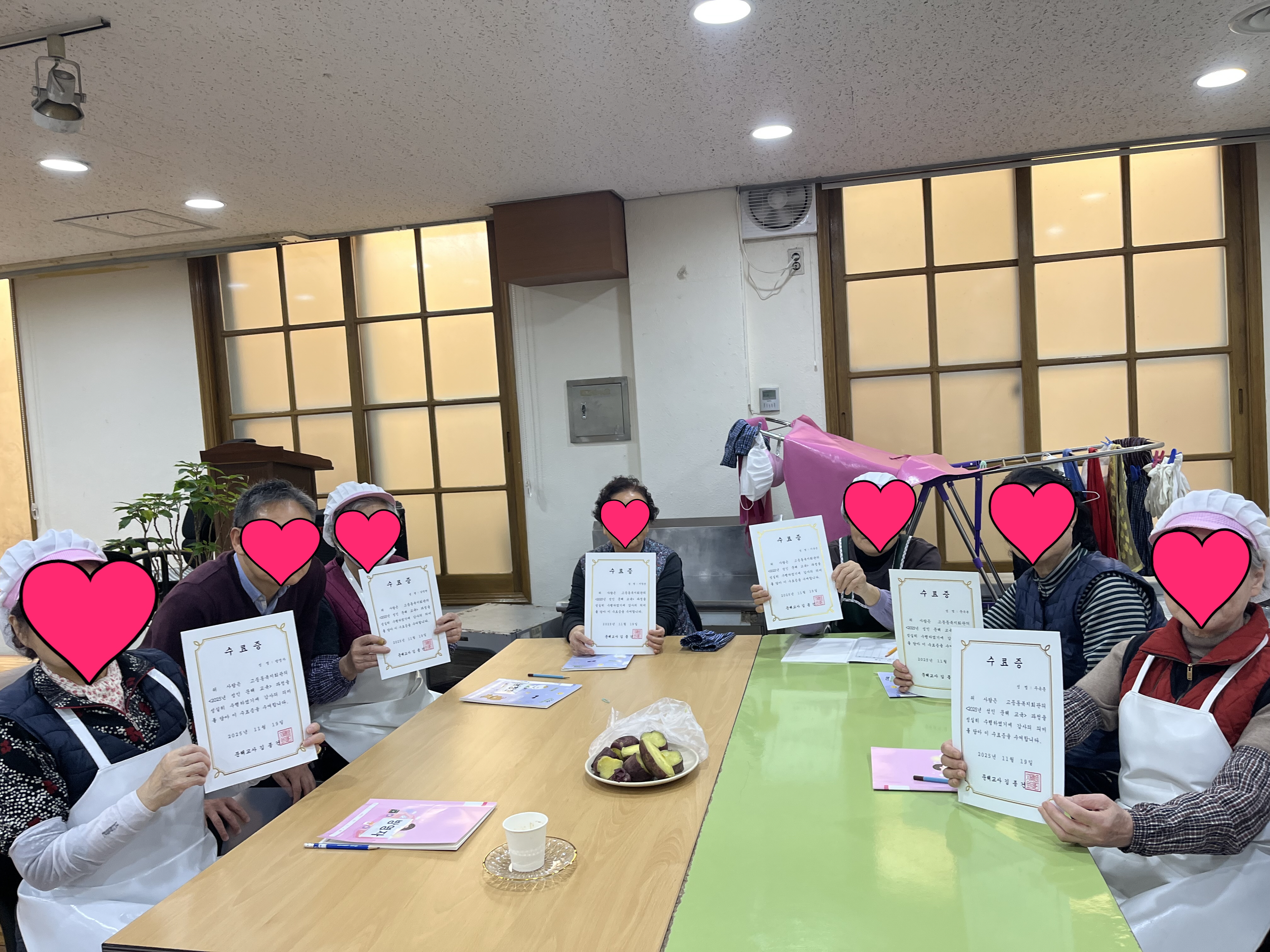 2025. 11. 19.(수) 3월부터 시작된 문해교실이 오늘(11/19) 마지막 수업을 끝으로 종강하였습니다. 총 10명의 어르신들이 성인 문해교육을 멋지게 수료하시고, 문해선생님으로부터 수료증을 받으셨습니다^^ 처음에는 한글을 읽기 어려워하셨던 어르신들이 지금은 한 본문을 거뜬히 읽을 수 있게 되셨습니다. 어르신들이 내년에도 문해수업이 지속되었으면 좋겠다고 아쉬워하시네요~ 오랜 기간 열심히 공부하신 어르신들 정말 수고 많으셨습니다!