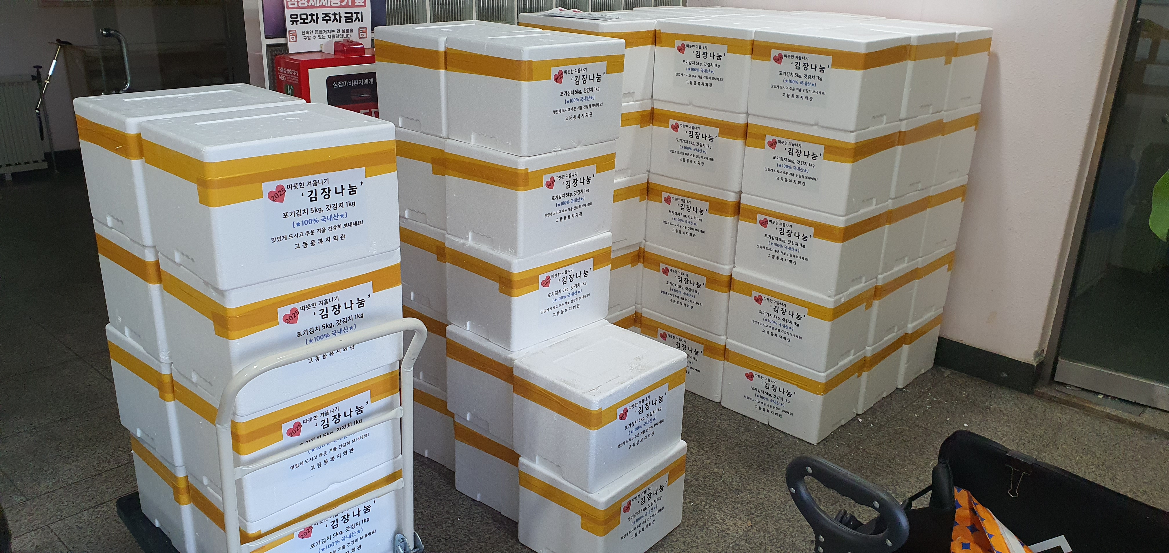 눈이 오는 12월에 따뜻한 겨울나기 '김장나눔' 행사를 진행했습니다! 이번 김장나눔 행사는 포기김치와 갓김치 2종류의 김치를 전달드렸는데요~ 어르신들이 맛있게 드시고, 추운 겨울 따뜻하고 건강하게 지내시기를 바랍니다.